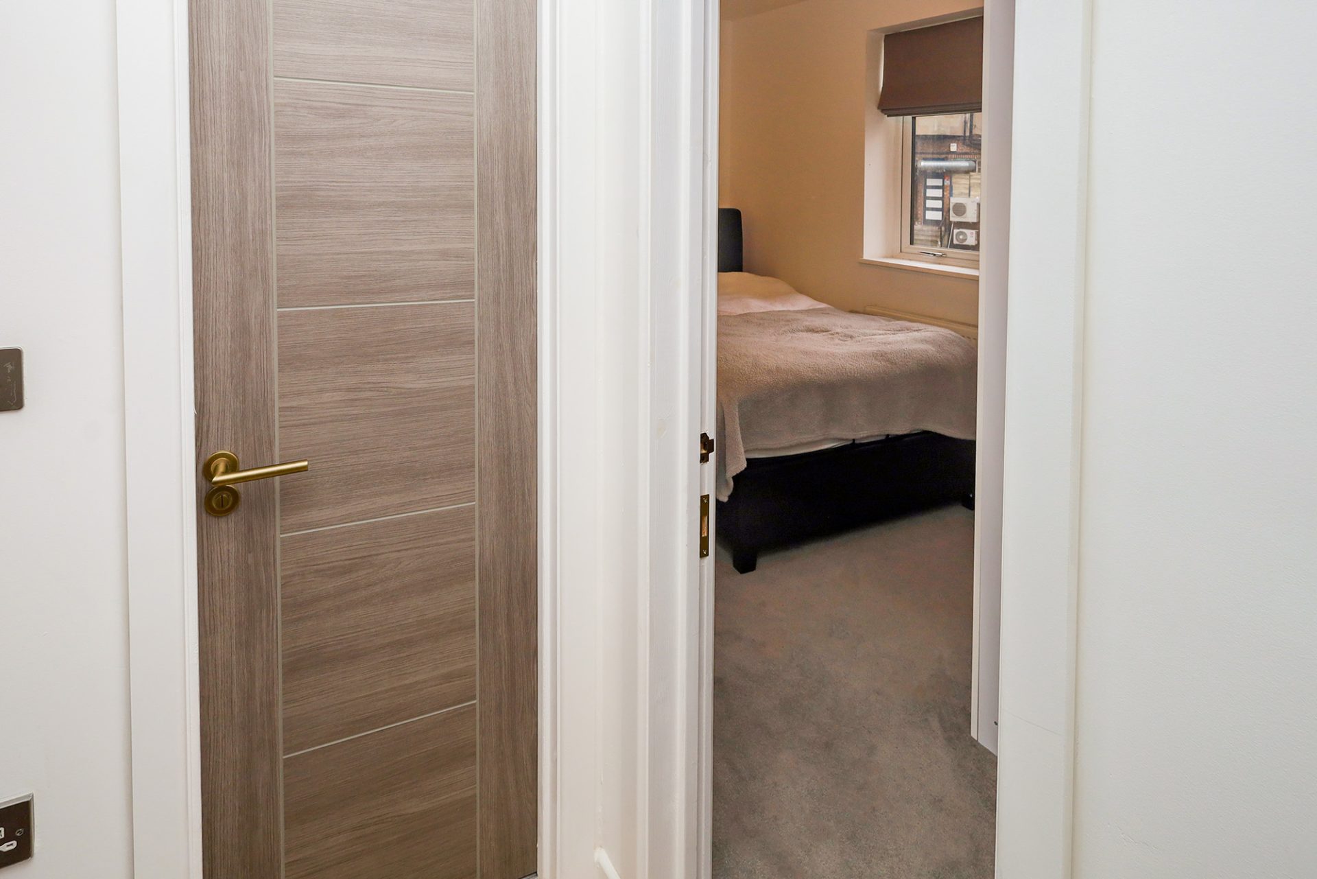 This modern professional home spans two floors, offering a generous living space. The expansive main bedroom ensures comfort and privacy with its substantial size and secure solid door.
